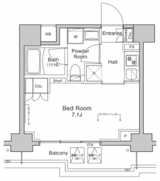 | 間取り | 1K | 専有面積 | 21.94㎡ |