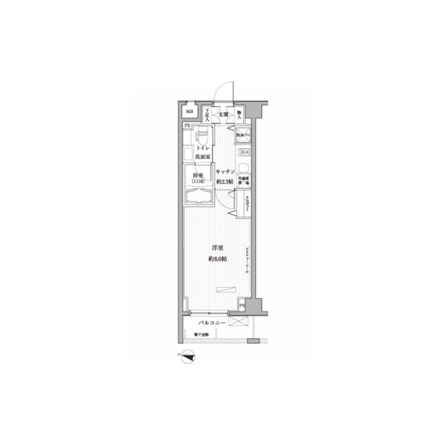 | 間取り | 1K | 専有面積 | 26.28㎡ |