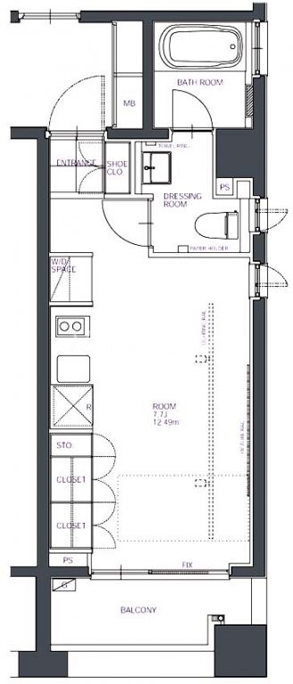| 間取り | 1R | 専有面積 | 25.57㎡ |