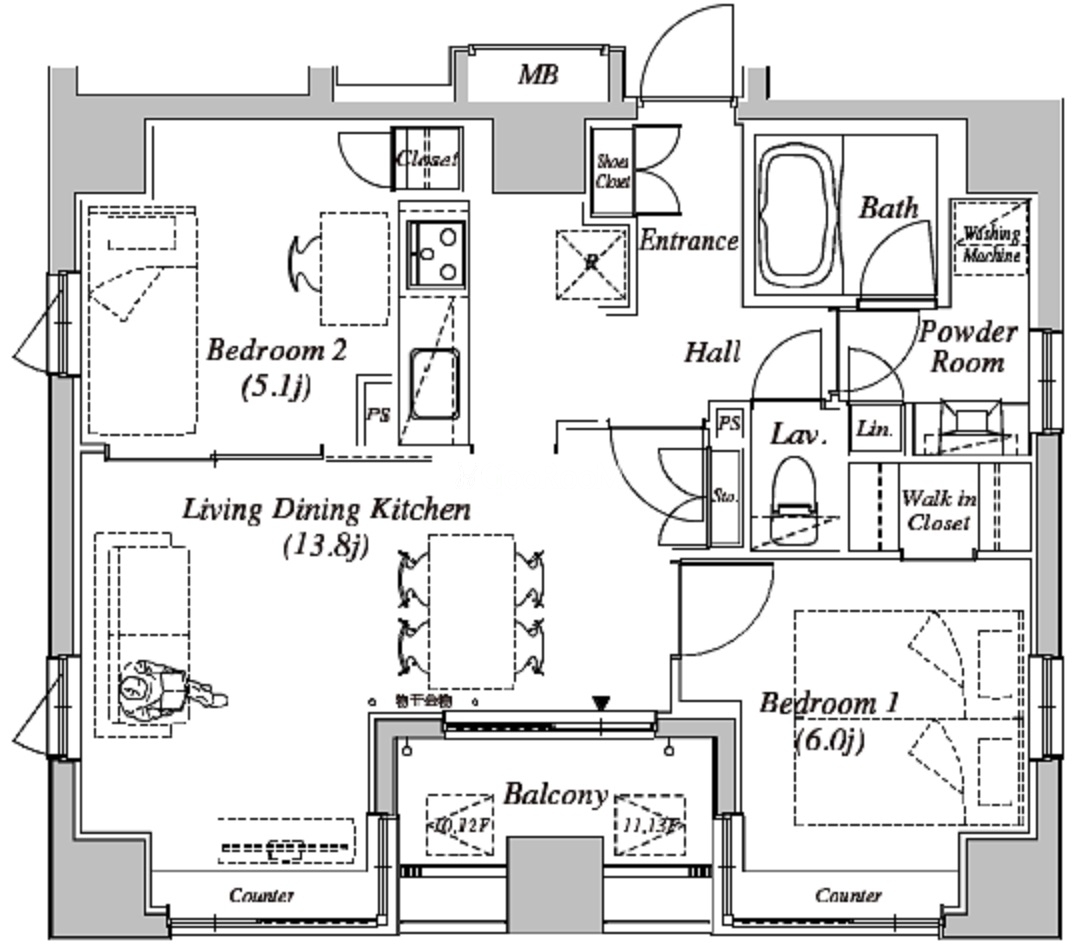 | 間取り | 2LDK | 専有面積 | 56.56㎡ |