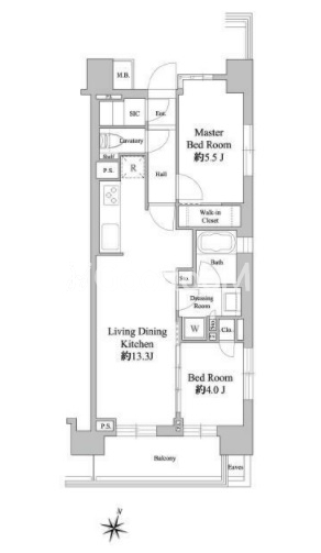 | 間取り | 2LDK | 専有面積 | 53.86㎡ |