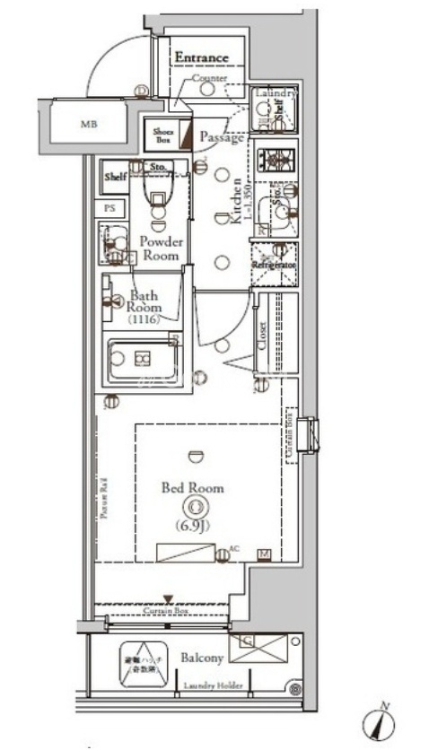 | 間取り | 1K | 専有面積 | 24.34㎡ |
