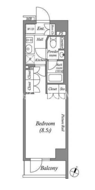 | 間取り | 1K | 専有面積 | 25.72㎡ |