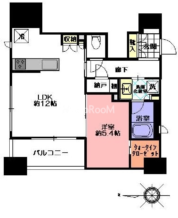 西向き、 広さ48.12㎡のお部屋です。
