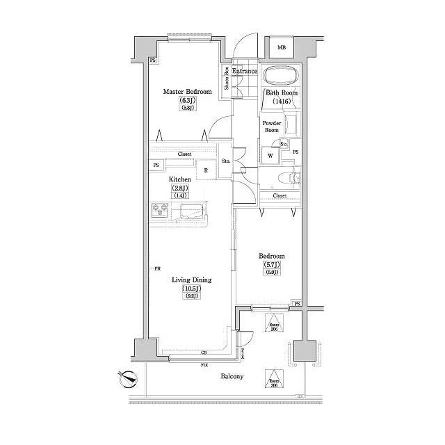 | 間取り | 2LDK | 専有面積 | 58.85㎡ |