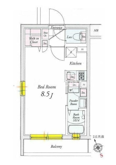 南西向き、 広さ25.41㎡のお部屋です。