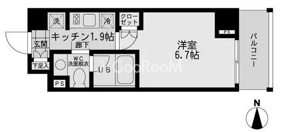 | 間取り | 1K | 専有面積 | 22.87㎡ |