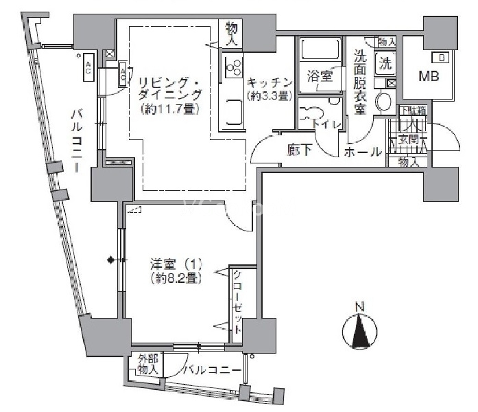 間取り | 1LDK | 専有面積 | 61.32㎡ |