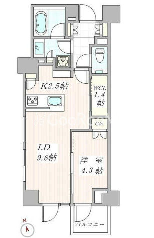間取り | 1LDK | 専有面積 | 44.3㎡ |