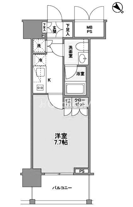 | 間取り | 1K | 専有面積 | 25.66㎡ |