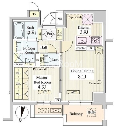 | 敷金/礼金 | 1.0ヶ月 / 0.0ヶ月 | 方位 | 北 |