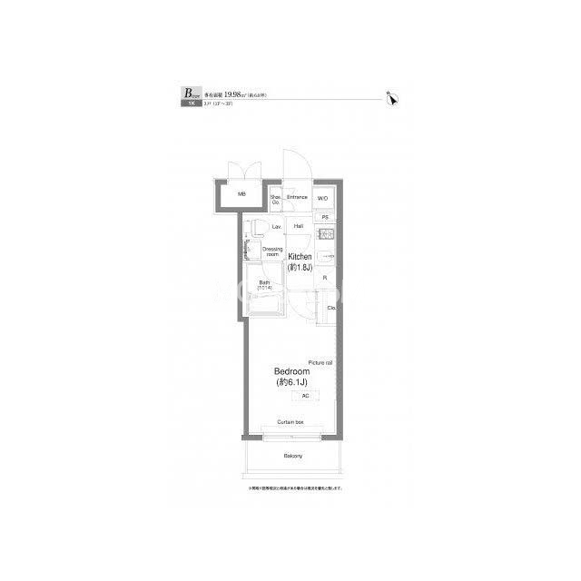| 間取り | 1K | 専有面積 | 19.98㎡ |