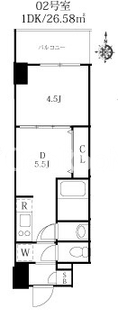 | 間取り | 1DK | 専有面積 | 26.58㎡ |