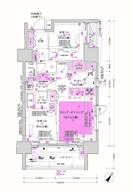 南東向き、 広さ54.79㎡のお部屋です。