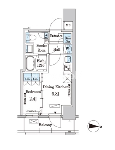 | 間取り | 1DK | 専有面積 | 25.24㎡ |