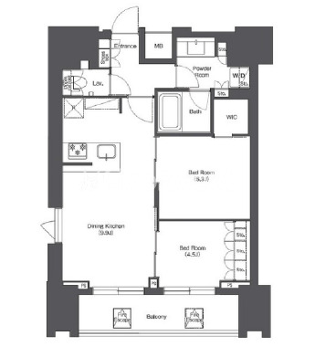 | 間取り | 2DK | 専有面積 | 52.68㎡ |