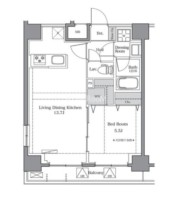 間取り:1R - 1K
