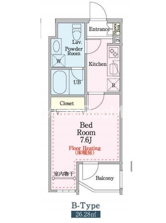 | 間取り | 1K | 専有面積 | 26.28㎡ |