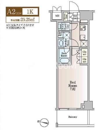 | 間取り | 1K | 専有面積 | 25.25㎡ |