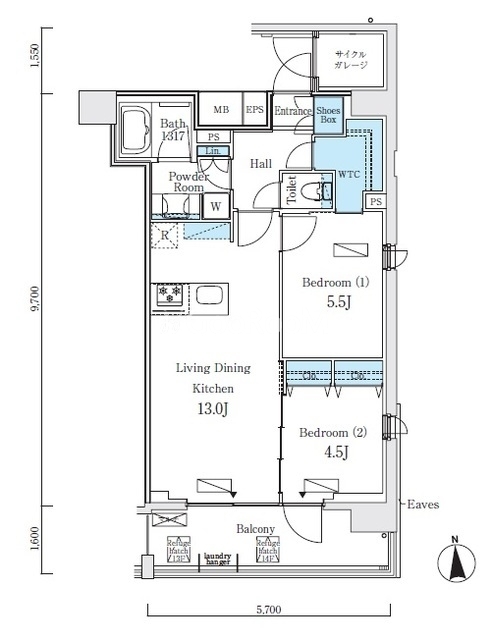 | 間取り | 2LDK | 専有面積 | 55.27㎡ |
