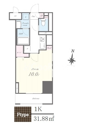 | 間取り | 1K | 専有面積 | 31.88㎡ |