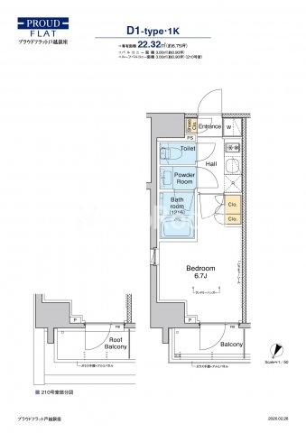 | 間取り | 1K | 専有面積 | 22.32㎡ |