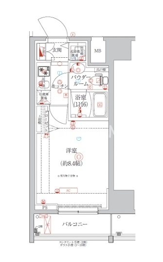 | 間取り | 1K | 専有面積 | 24.45㎡ - 25.06㎡ |