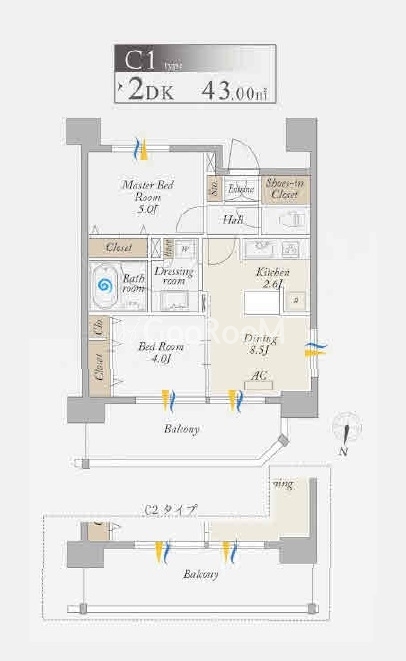 | 間取り | 2DK | 専有面積 | 43㎡ |