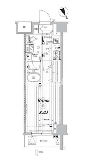 | 間取り | 1K | 専有面積 | 26.10㎡ |