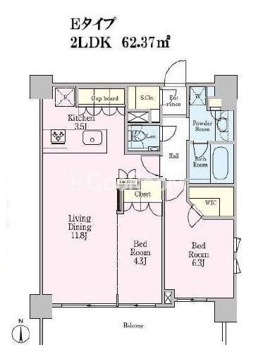 | 間取り | 2LDK | 専有面積 | 62.37㎡ |