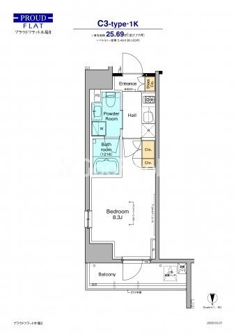 | 間取り | 1K | 専有面積 | 25.69㎡ |