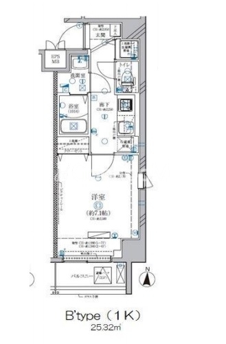 | 間取り | 1K | 専有面積 | 25.32㎡ |