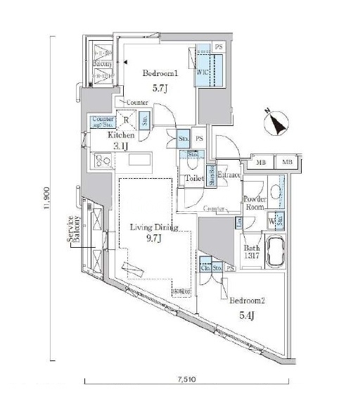 | 間取り | 2LDK | 専有面積 | 59.76㎡ |