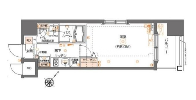 | 間取り | 1K | 専有面積 | 25.5㎡ |