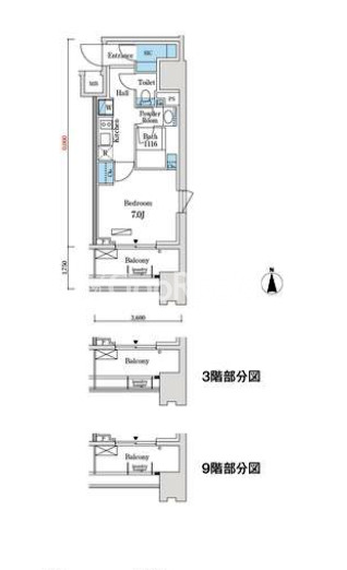 | 間取り | 1K | 専有面積 | 25.47㎡ - 30.04㎡ |