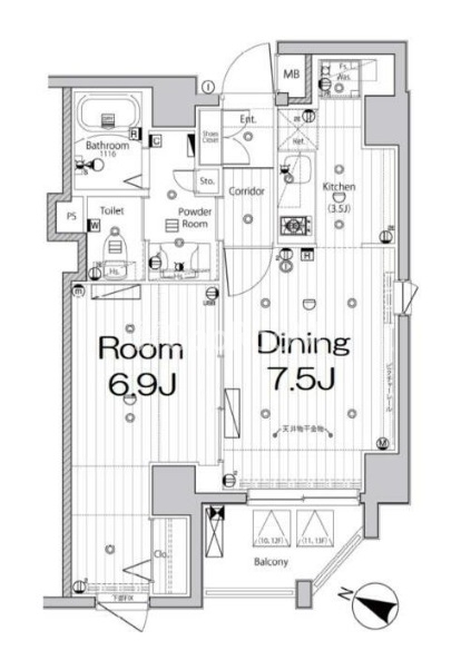 間取り | 1LDK | 専有面積 | 41.46㎡ |