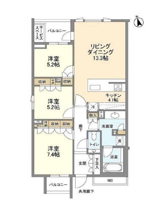 北向き、 広さ83.8㎡のお部屋です。