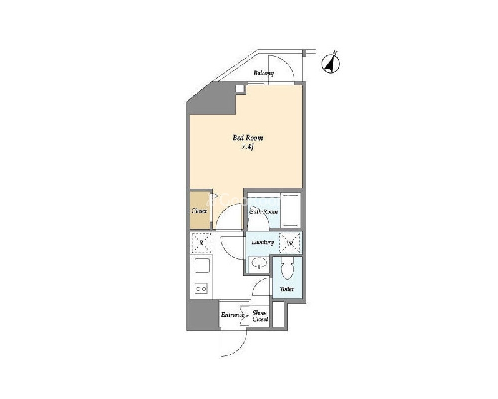 礼金0.0ヶ月、 北向き、 広さ25.3㎡のお部屋です。
