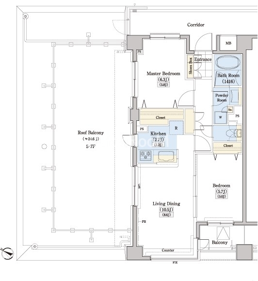| 間取り | 2LDK | 専有面積 | 58.85㎡ |