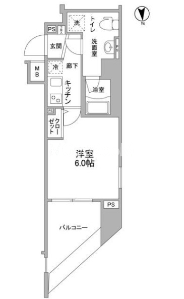 | 間取り | 1K | 専有面積 | 22.9㎡ |