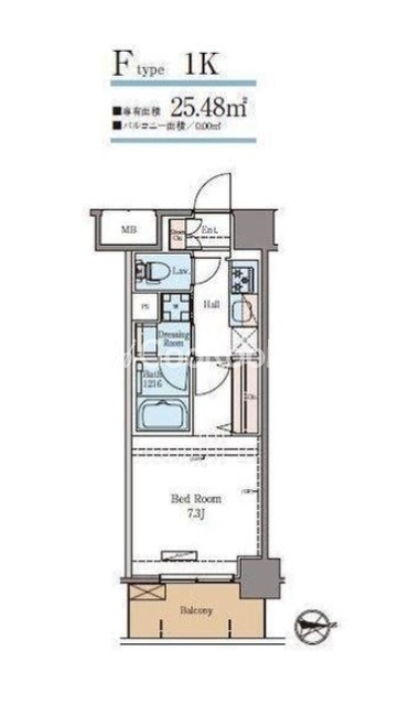 | 間取り | 1K | 専有面積 | 25.48㎡ |
