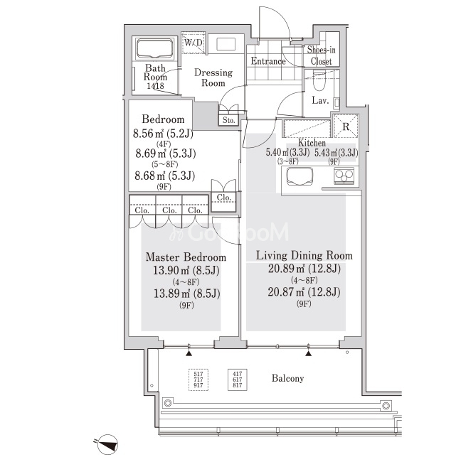 | 階数 | 8階 / 地上33階 (地下2階) | 方位 | 西 |