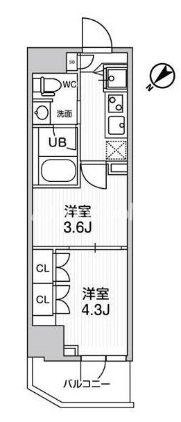 | 間取り | 2K | 専有面積 | 25.7㎡ |