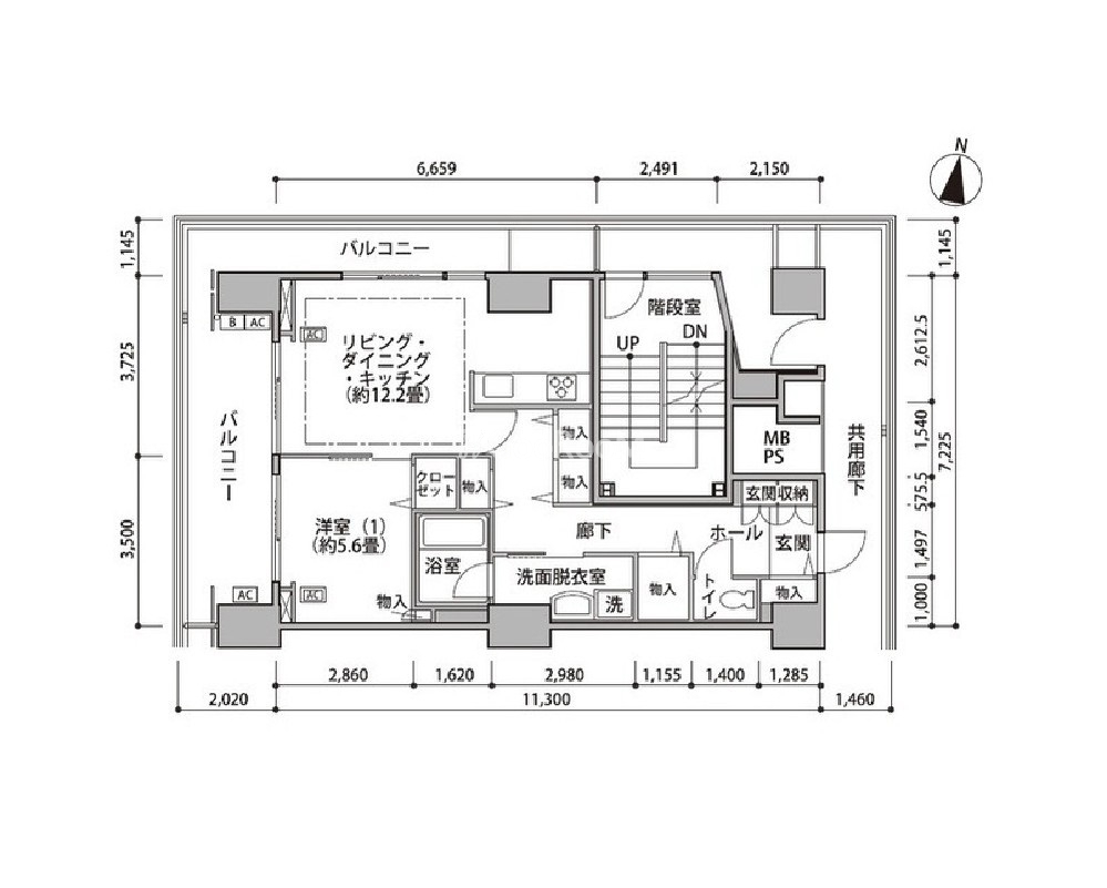 北西向き、 広さ61.04㎡のお部屋です。