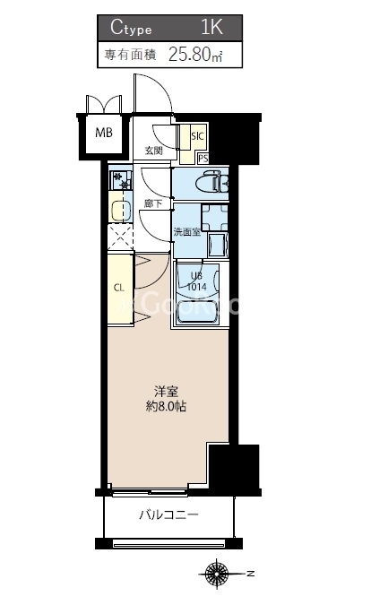 | 間取り | 1K | 専有面積 | 25.8㎡ |