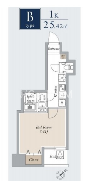 | 間取り | 1K | 専有面積 | 25.42㎡ |