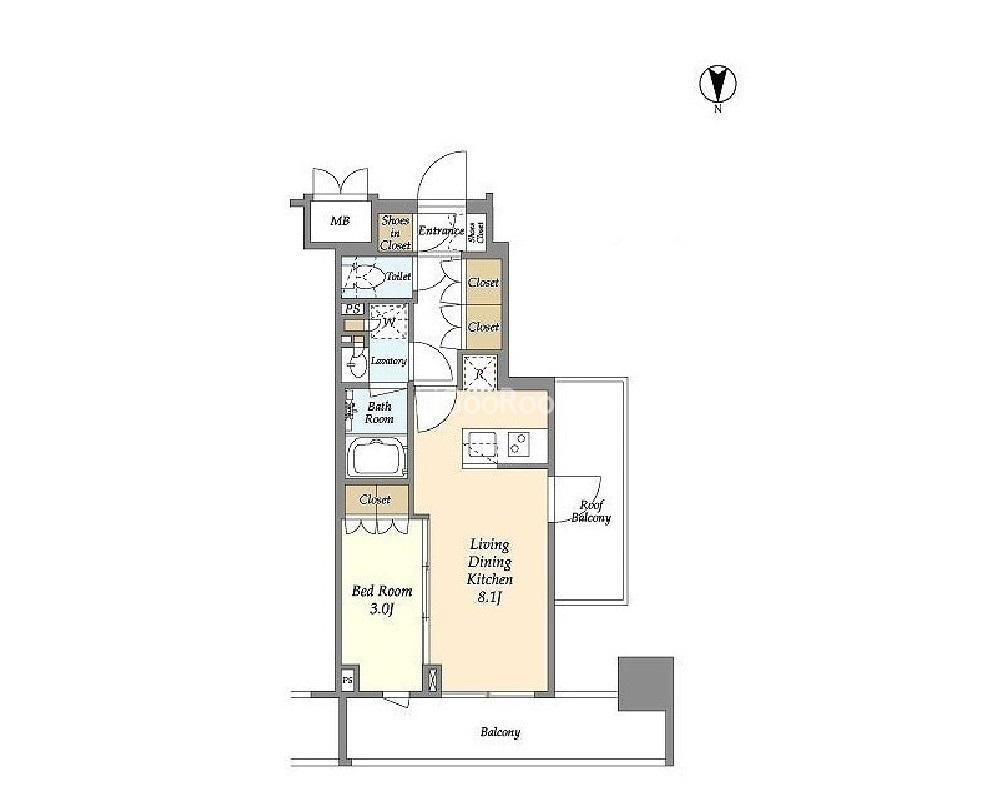 | 間取り | 1K | 専有面積 | 29.8㎡ |