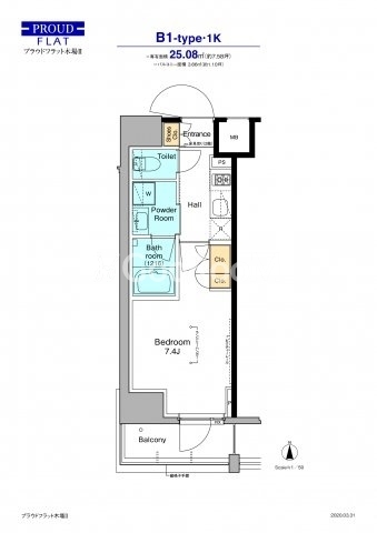 | 間取り | 1K | 専有面積 | 25.08㎡ |