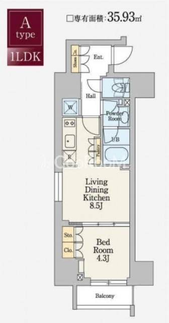 | 間取り | 1LDK | 専有面積 | 35.93㎡ |