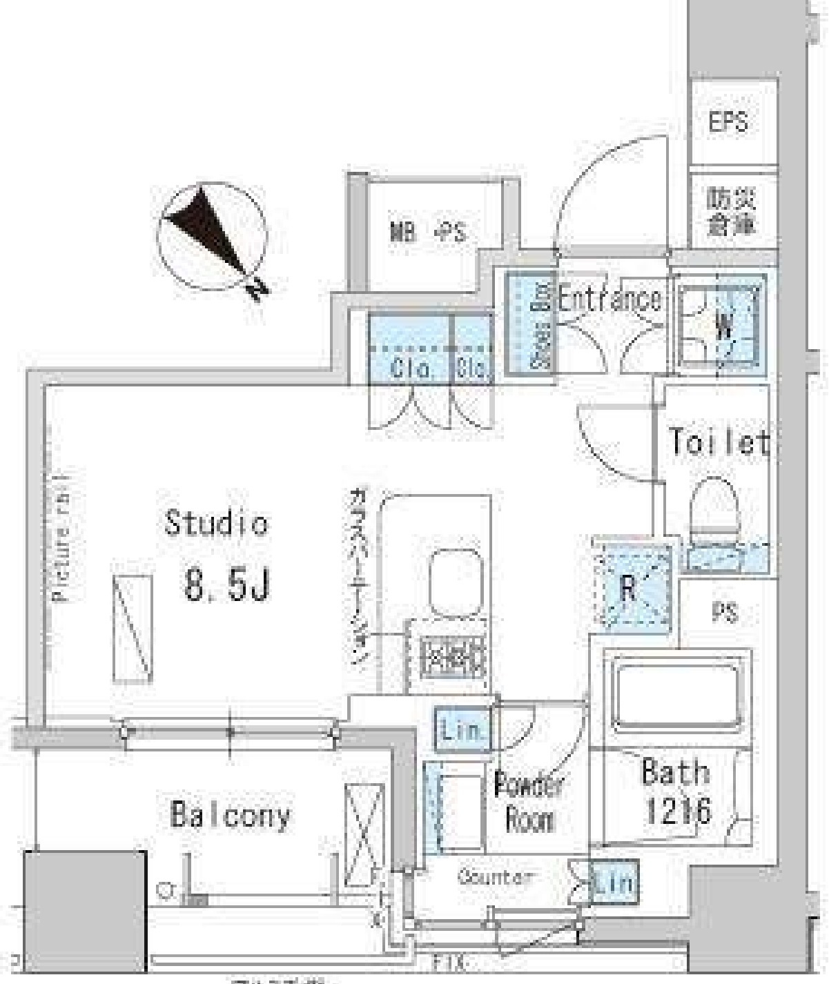 | 間取り | 1R | 専有面積 | 26.04㎡ |